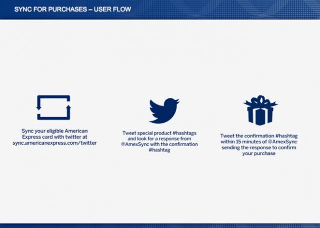 American Express launched a new social commerce experience last week during Mercedes-Benz Fashion Week (MBFW) that turns the hashtag (#) into a way to pay. @AmexSync allows American Express Cardmembers, who sync their cards at sync.americanexpress.com/twitter and tweet special #hashtags, to buy American Express Gift Cards and products from Amazon, Sony, Urban Zen, and Xbox 360.