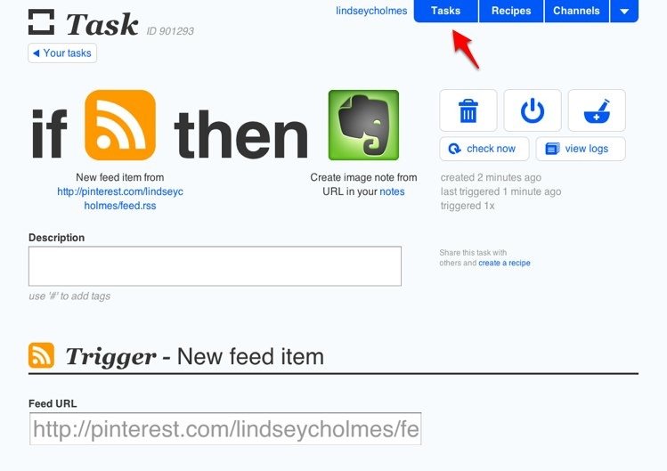 - Create a Task. If is the RSS Trigger, That is Evernote.